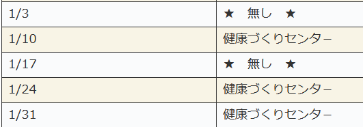 コアラクラブの2026年1月の練習日程を掲載しました。