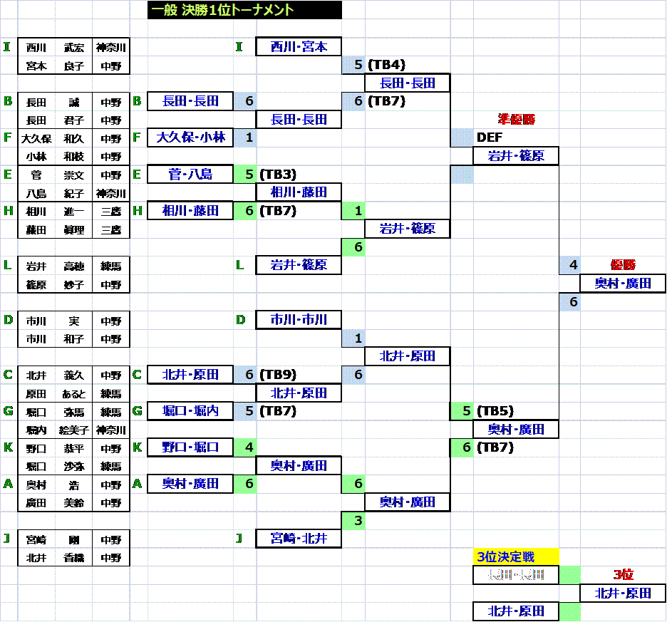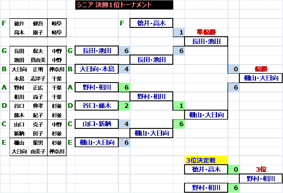 ★ 全試合結果はこちら(PDFファイル) (試合の様子等を追加掲載予定) シニア 優勝 柵山・大日向組 準優勝 長田・池田組 3位 野村・相川組