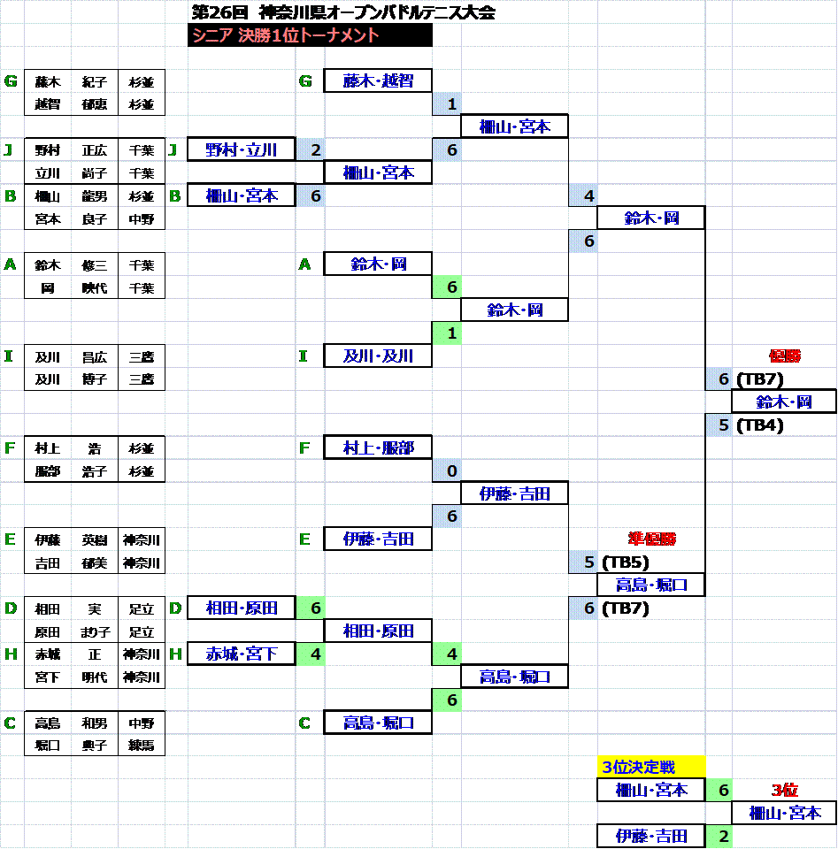 シニア 優勝 鈴木・岡ペア 準優勝 高島・堀口ペア 3位 柵山・宮本ペア